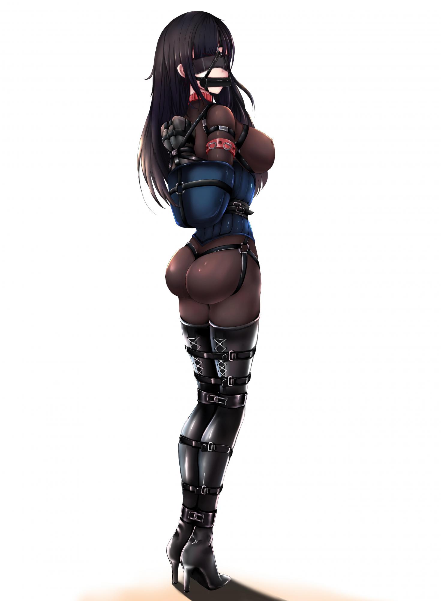 我决定马上行动。第一步是尝试着站起来,在黑暗中保持平衡本就比较困难,何况我还被紧缚着,双手被高吊在后颈,没法帮助我保持平衡,甚至连起码的支撑作用都起不到。好在平日里并没有落下锻炼,依靠还算靠谱的腹肌,我成功让自己坐了起来,又一点点摸索到床边,先把脚放到地面,然后腰腿发力,借助着床的高度让自己站起来。这次我没有忽略脚下的高跟鞋,精细控制了发力,在勉强晃悠了两下后终于有惊无险地站了起来。