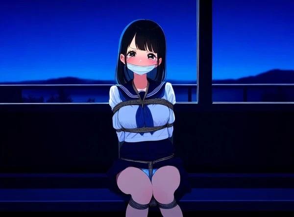 修长白皙的玉腿被束缚到这个地步,猫猫已经无法动弹了。