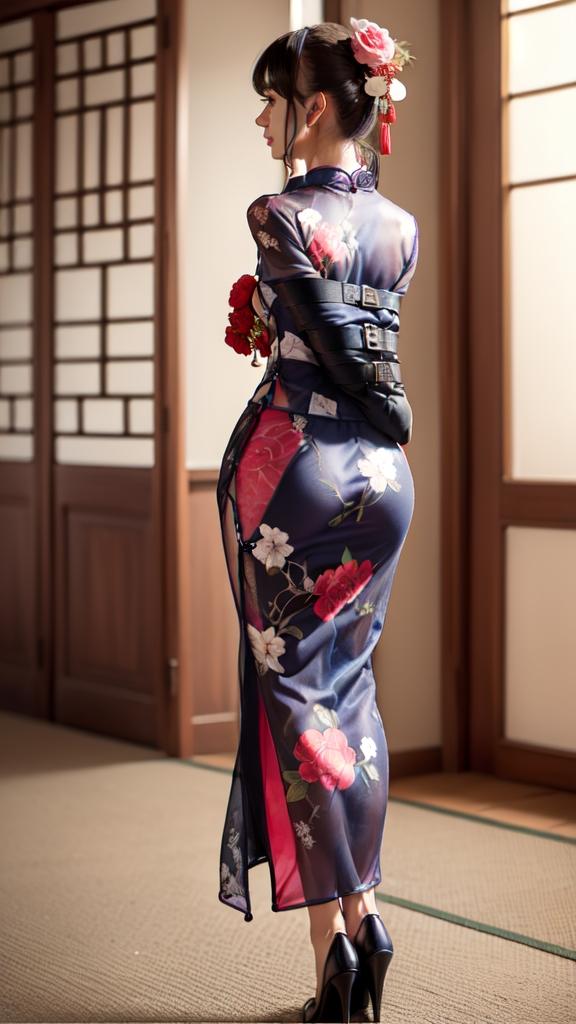 “翠羽腰封”将柳如烟的腰部收紧到极致,形成了贵族所推崇的纤细沙漏形身材,但这种紧束让她的每一次呼吸都变得困难。胸腔的压迫使得她只能进行浅而短的呼吸,长时间保持这种姿势导致她的胸口时常感到一种隐隐的压迫感。水晶骨架进一步限制了上半身的活动范围,她的肩膀和背部被固定在一个挺直的姿态,无法弯曲或放松,这让她在静坐或站立时都必须保持一种刻板的优雅。