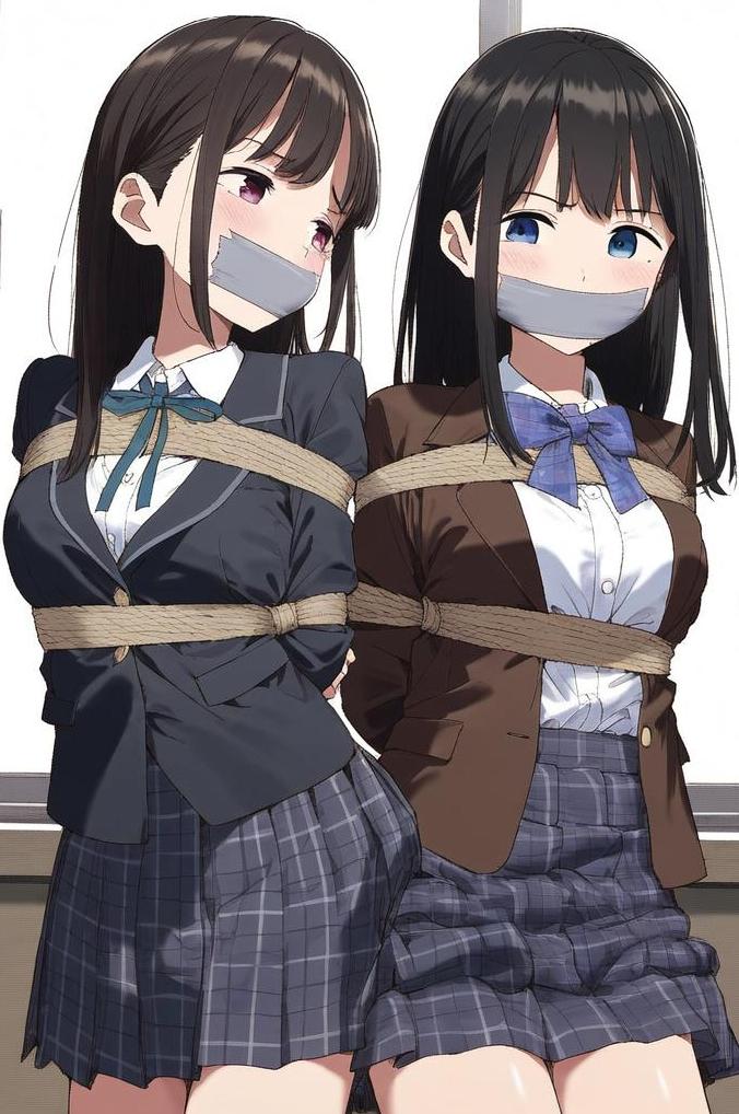 (为什么外套颜色不一样,因为是两个伪娘被女友强制女装绑起来玩,并不是校服。)