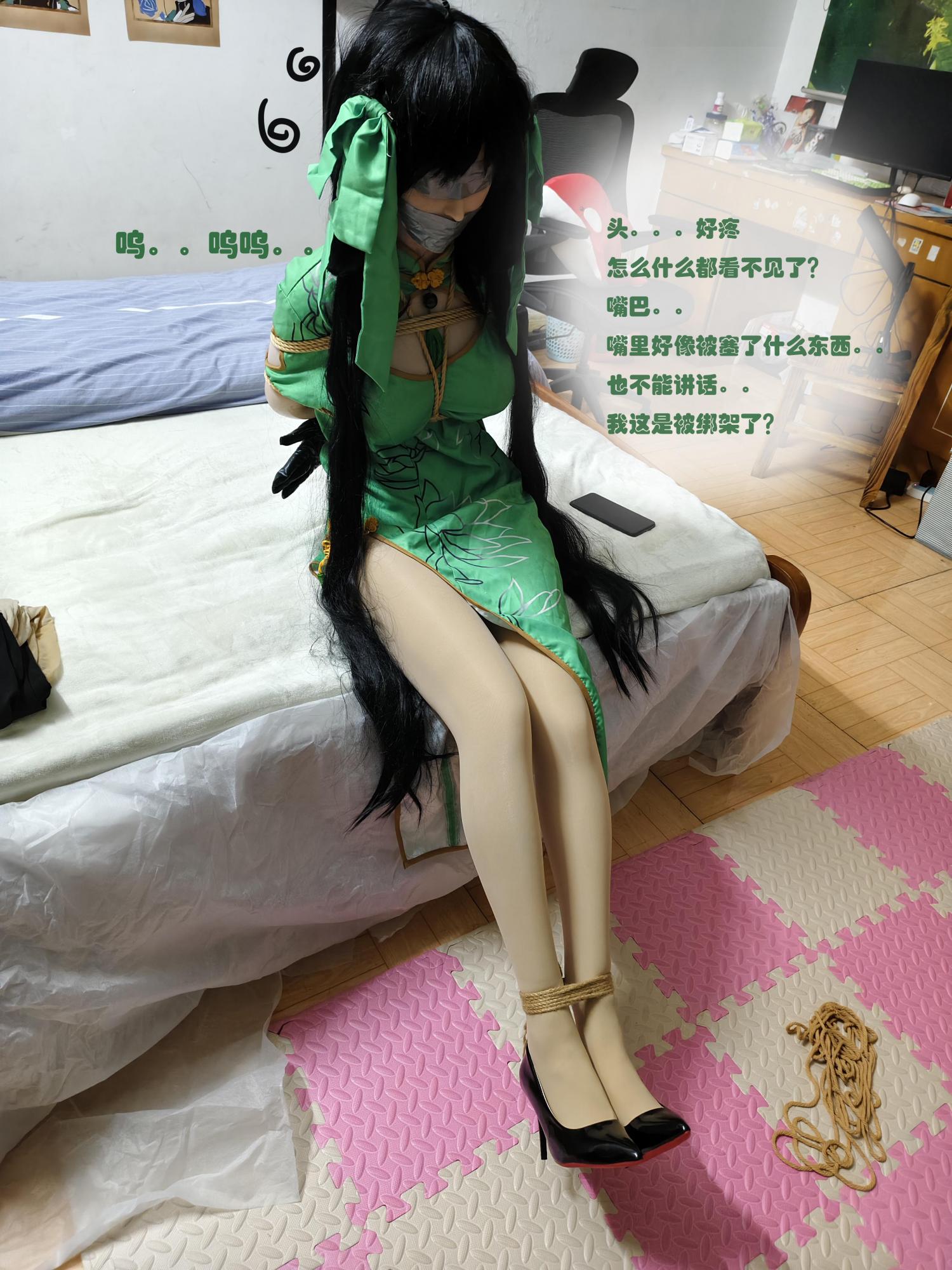 孙尚香疯狂扭动身体,胸前的绳子被扯得更紧,乳肉几乎要从旗袍领口溢出来,她只能发出愤怒又无助的「呜——!呜呜呜——!」