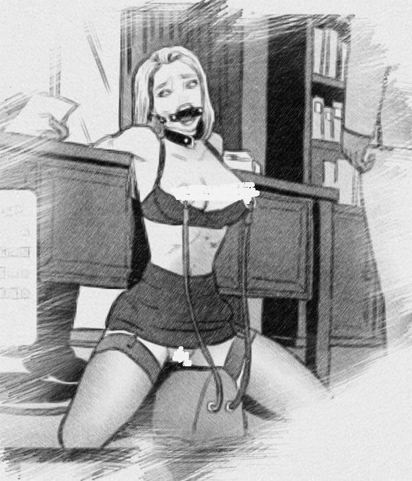 然后朵朵起身把房间的门反锁了,这才脱下身上宽松的运动衣,露出了里面性感的身材。只见朵朵上身挺翘结实的胸脯挤压在黑色的胸罩里面,黑色的窄边儿蕾丝内裤紧贴着她的[不可描述],里面的轮廓清晰可见,双腿上是黑色的吊带丝袜,贴在雪白的大腿上,又有别样的妩媚性感。朵朵露出自己性感的皮肤也不觉得害羞,直接在白若琴的面前展示自己的身材,然后朵朵搬出了一个马鞍形的炮机,放到了白若琴办公桌前面的地面上,这个马鞍形的炮机上面伸出一个柔软的橡胶棒,还有一根电线从马鞍形的炮机的尾部伸出来,前面有两个小夹子。