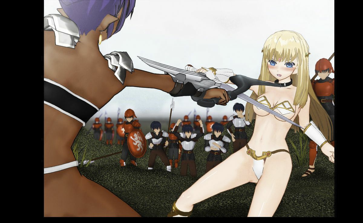 被解除武装的同盟军士兵们,和包围他们的魔王军的士兵们,作为“观众”屏息注视着两个女战士的决斗。