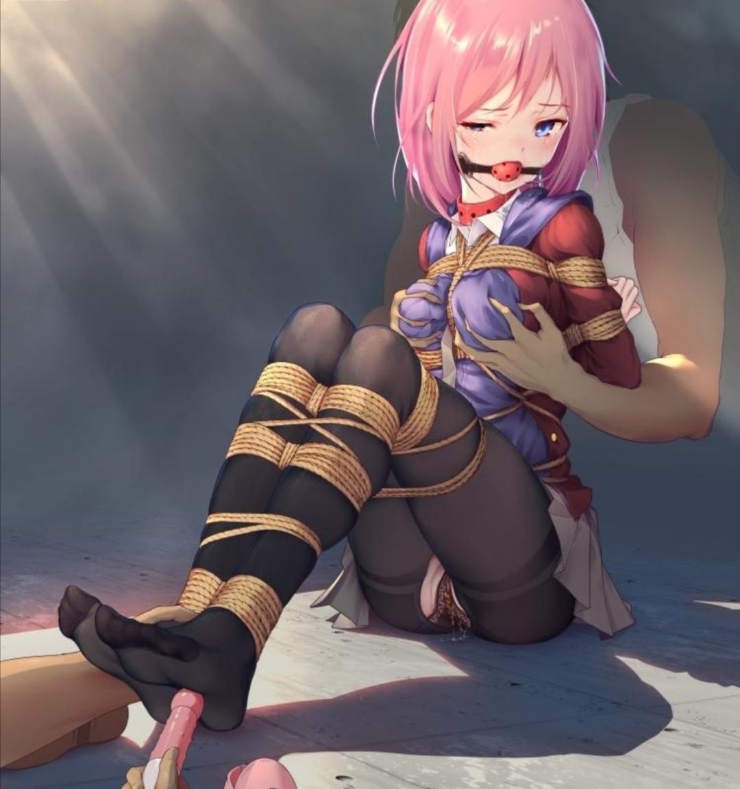 两条白丝美腿呈一字马打开,分腿棍让它们在股绳的刺激下也无法并拢,两只玉兔被绳子勒得凸了出来。