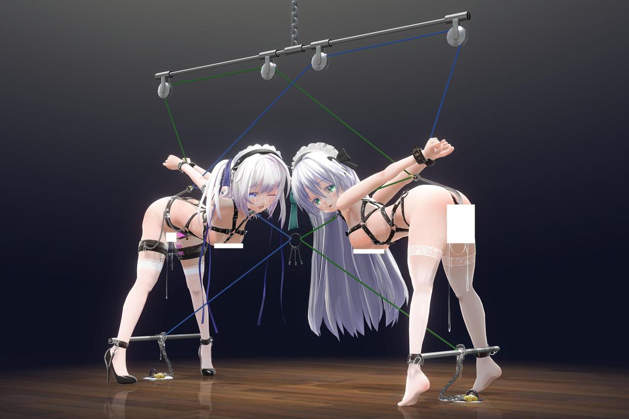 对上pixiv有疑问和封面图片感兴趣的小伙伴们,可以考虑qq:1838464065,凭截图免费发送无码小说!1金币福利 节选:吊住她手铐的绳子,另一端绕过几个定滑轮,穿过了一个深入我后庭的挂钩,再沿着我的后背往上折,最后连在我脖子的项圈上。我现在和我姬友四目相对,以一模一样的姿势被吊着绑了起来——两只脚被舒展杆分开站在地上,上半身前倾,手臂向后举高,而手铐上的绳子同样绕过几个定滑轮,连接到了她的后庭挂钩和项圈上。不仅如此,我身上穿着的不是平时的女仆装,而和姬友一样也是一副皮带挽具。不同的是,我的挽具胯下部分还套进一根对我娇小的体形来说过于粗大的[不可描述],死死地顶住了我的花心。挽具和项圈传来