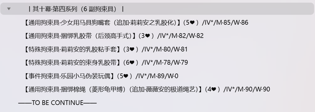 本文附图为近期将推出的【第四系列·拘束具】的目录预览;