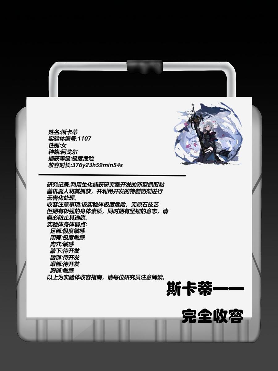 “……不想受伤,就乖乖回去……滴水村,不是你们该来的地方……”少女用那深红的眼眸冷冷的扫视了一下四周,手中的大剑以及脚边倒下的一个个赏金猎人证明少女纯粹的强大,而那几乎要垂落至地面的雪白长发,勾勒出肉腿的黑色皮裤,包裹住白嫩小脚的棕色短靴,以及那冰冷到看不穿内心的眼神则证明少女的身份——深海猎人斯卡蒂。