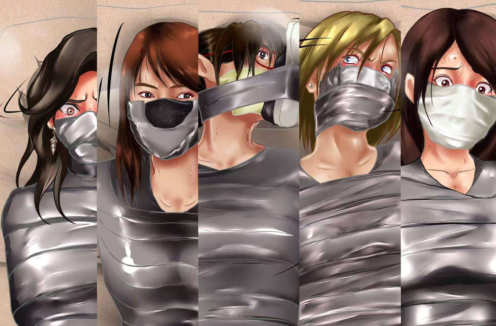 刺耳的撕扯声响起。三片绷带呈“米”字型交叉贴在了小川的嘴唇上,将棉袜彻底封死在口中。小川试着呜呜叫了下,嘴唇立刻被绷带扯得生疼,她没想到店家居然会用这么强力的封嘴胶带,要知道越强力的胶带成本也越高,店家真的因为追求体验的极致所以才这样做吗?还是说……是为了不想让她们呼救呢……?一瞬的想法让小川不由得毛骨悚然,她连忙摇摇头,打消了这种念头。