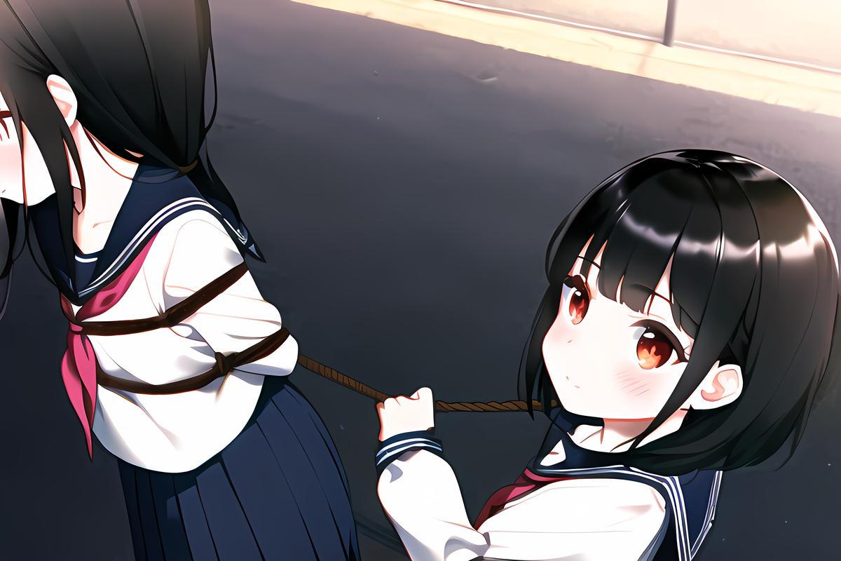 (小女孩展示自己绑女孩子的特权,然后被大叔平等地绑架)