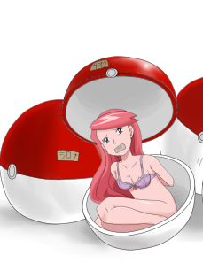 悠翔把精灵球拿出来,对准正在挣扎的真奈美。