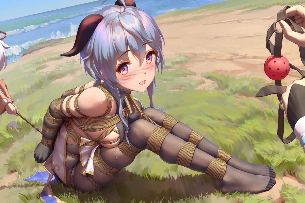 因为在那个浴场里,所有的人都戴着一样的贞操带,有着不同的各型各色的拘束。也有小部分人拘束非常少,甚至口塞都没有佩戴,那一部分人就可以自由的在浴池的到处走动。