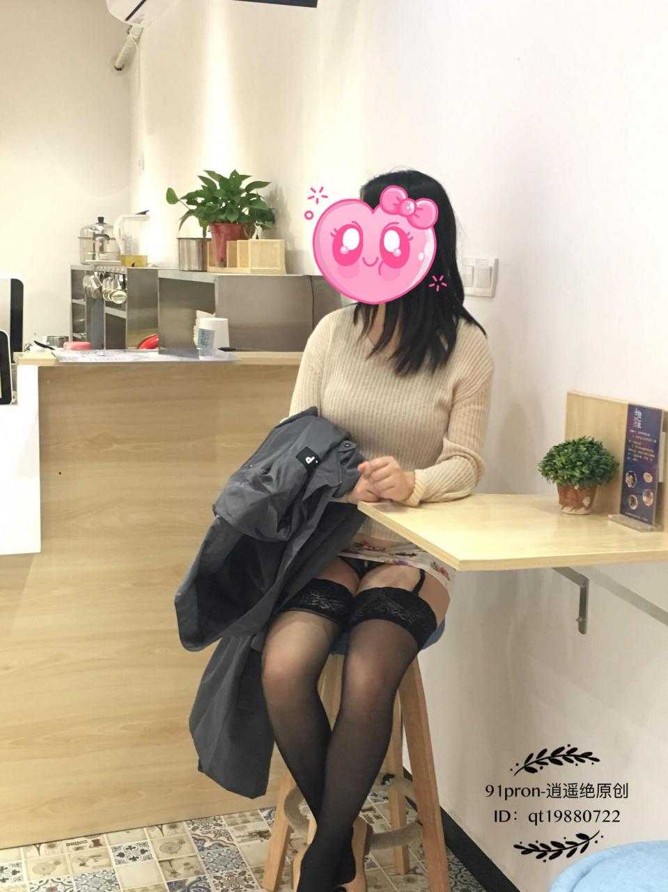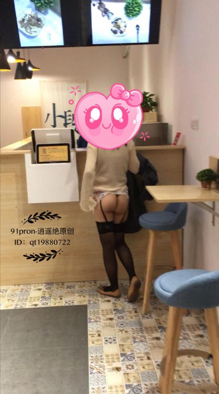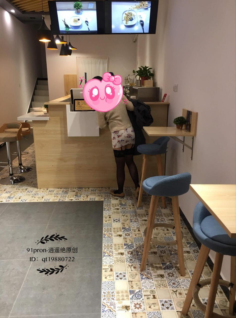 之后我们又来到一家甜品店,品尝了一些甜品。这家店沿街的一面墙和门都是玻璃的,从外面往里面看的话,可以直接看到她裙子里面的丁字裤。她在柜台点东西的时候,我在后面把她的裙子给掀了起来。当时的我就顾着拍照了,也没有注意外面有没有人看到。