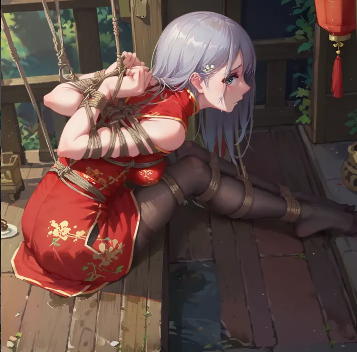 “呼呼呼……”程小慧贪恋地喘着粗气,气体通过堵住嘴巴的红色橡胶口球的小孔快速进出,双眼无神,性感火辣的身躯被一股股令人看了眼花缭乱、错综复杂的麻绳紧紧地捆绑着,娇躯还在微微的颤抖……米白色薄纱连衣短裙在汗水的渗透下,紧紧地贴着那诱人的酮体,一双修长白皙的美腿被一双残破不堪、布满浑浊液体的超薄白色丝袜包裹着,透过米白色裙摆可以看到,程小慧的思处有一个棒状的隆起,正在旋转扭动,一条粗大的麻绳在肚脐眼处往下绕过下休系在腰间的绳子上,紧紧地勒进两片肥翘的臀肉,将棒状物固定住……程小慧疲软地仰躺在柔软宽大的欧式床垫上,头顶水晶吊灯的光芒随着太阳的缓缓升起而逐渐减弱,直至熄灭。