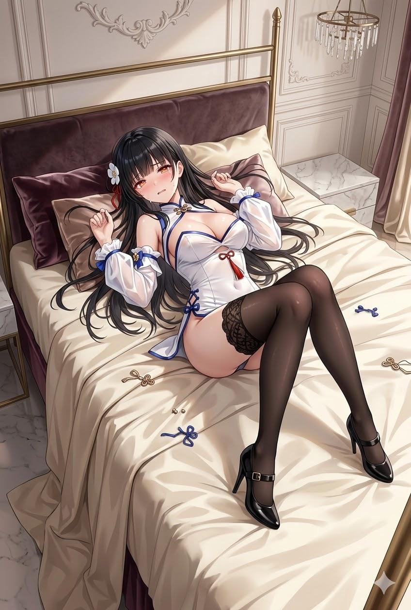 若溪站在床边欣赏着眼前的绝美画面。一位宛如从水墨画卷中走出的绝代佳人,此刻双手被反绑高吊在背心,酥胸被红绳勒出诱人的曲线,双腿也被如同人鱼尾巴一样并拢捆死。口中含着羞耻的赤红口球,嘴角溢出口水,裙摆凌乱地堆在腰间,露出被黑丝包裹的修长玉腿,就连最私密的花茓也被跳蛋侵入并用股绳勒至变形。