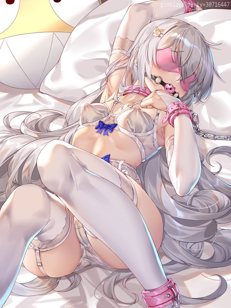 最后是少女的那种红颜祸水的小脸,眼睛被一个黑色的眼罩给蒙住使得少女的视觉被无情的剥夺,而少女的那张小嘴——此时梦中的我正在将一对肉色的丝袜中的一条往少女的嘴里塞,少女不知道是不敢反抗还是为何,只是特别配合的张着嘴巴,让我将那条丝袜慢慢的,慢慢的,塞进那张小嘴里,塞进去之后,少女的嘴巴因为丝袜的存在而微张着,配合那一点咬在嘴里的肉丝,显得十分的妩媚,我却像是还不满足的微微皱了皱眉,转过身不知从什么地方掏出一个红色的带孔口球,然后一手捏住少女微张着的小嘴,将口球递到少女的小嘴前,少女感受到了口球的存在,将被肉丝微微撑开的